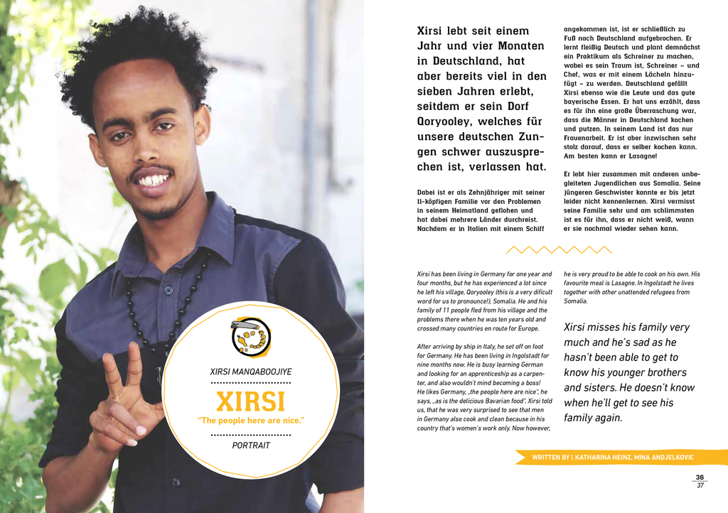"Wie können Leute aus unterschiedlichen Ländern zusammen kommen? Am besten doch über das Essen! Jede Kultur präsentiert Ihre eigene Art zu Kochen! Ein multikulturelles Medien-Kochprojekt von Jugendlichen in Ingolstadt mit alleinstehenden Jugendlichen aus afrikanischen Ländern: Es wird zusammen geplant, vorbereitet, gekocht und natürlich gegessen. Begleitet von einem Foto- /Video-Team werden die Momente eingefangen, per Blog berichtet oder zu einem Trickfilm verwurstelt und am Ende in einem internationalen Rezeptkochbuch zusammen gefasst." (KADS)